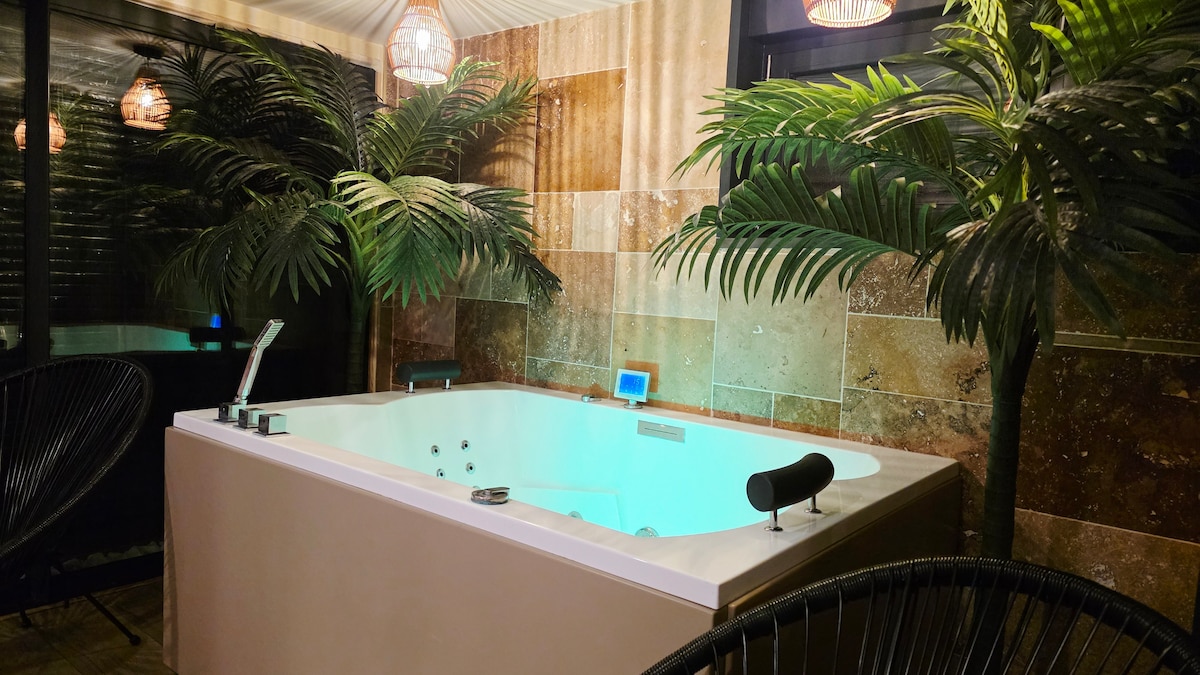 Notre suite vous offre tout le confort nécessaire avec une balneo, sauna et douche italienne. Un lit king size très confortable pour vous reposer, et un joli coin salon pour chiller. Une cuisine est à disposition ou une formule repas est proposée. Vous avez également une tv connectée et le wi-fi. L'atelier du Chill met à disposition le linge de toilette et de lit. Le petit déjeuner est inclus. Vin, champagne ou cocktail inclus sous conditions. interdit -18ans/Uniquement pour 2 personnes !
