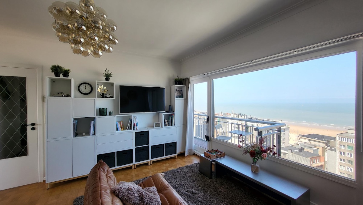 Luxuriously finished and cozy walk-through-apartment with two separate bedrooms located on the fifth floor in the well-maintained residence called Martijean. The terrace offers an amazing and unique frontal sea view of the iconic Pier from Blankenberge, the beautiful beaches and its dunes, leading to the protected nature reserves 'De 3 Fonteintjes' and 'Zeebos'. An outside parking spot No. 389, within walking distance, is available. Come and enjoy a well-deserved vacation!