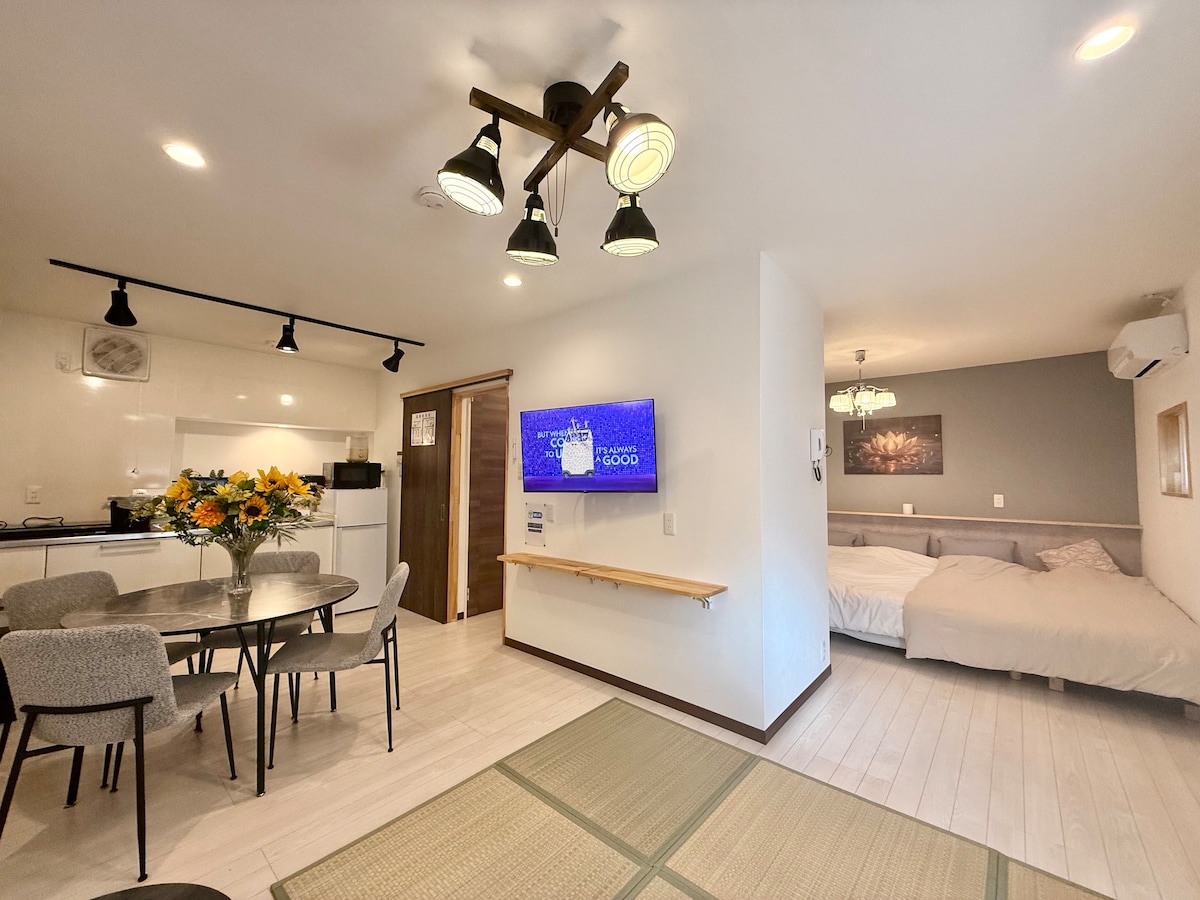 【Ushamy's KOKURA STAY No 01🐇】 【适合家庭和团体入住!免费停车 & 设备齐全的厨房】 ★由于距离小仓站有一段距离,建议使用租车。即使是*可乘坐8人的家庭用车*也能轻松停放。★ • 免费停车场|距离小仓站车程约8分钟 • 设备齐全的厨房|三口炉灶 & 烹饪用具齐全 • 两间卧室|4张单人床 + 1张折叠床垫 • 50英寸电视 & 宽敞的客厅/餐厅沙发(可供5人使用) • 无障碍电梯,可供轮椅通行 • 可容纳所有客人的大行李箱 推开房门,温馨自然的空间映入眼帘。这不仅仅是一个住宿的地方,更是一个可以像家一样舒适入住的空间。在厨房使用当地食材烹饪美食,与亲友在客厅畅谈,共同编织美好旅行回忆。 【交通 & 周边景点】 • 小仓城、旦过市场|车程约10分钟 • 门司港复古街区|车程约20分钟 • 皿仓山夜景观赏地|车程约25分钟 • 下关 & 唐户市场|车程约35分钟 • 角岛大桥|车程约90分钟,享受绝美自驾风景 在这里开启您的新旅程!无论是观光、商务出差还是远程办公,这里都是您的理想落脚点。也适合长期入住,保证舒适的住宿体验!