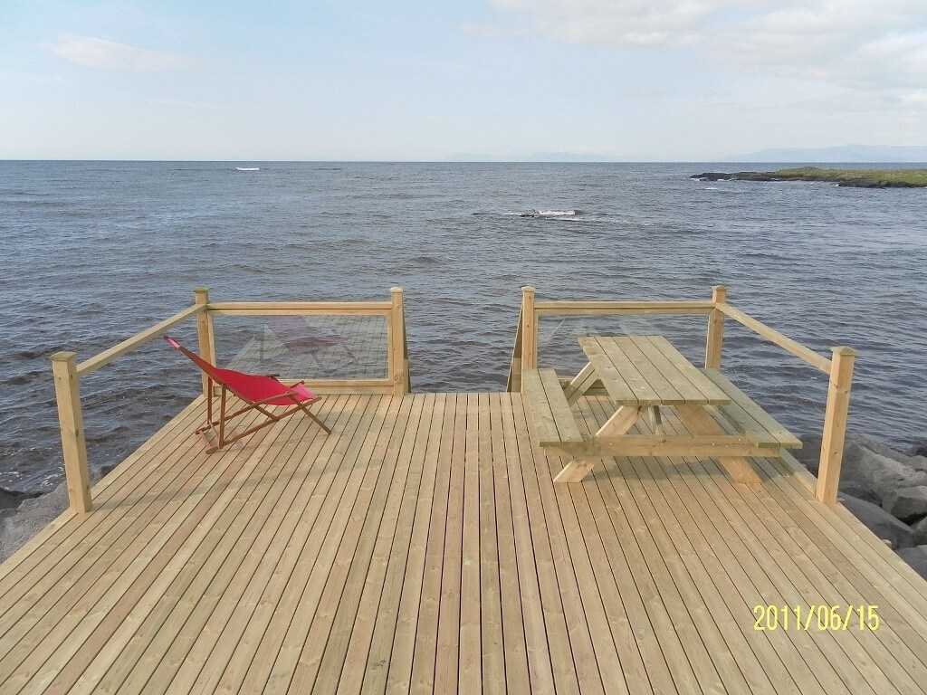 Spectacular place´ Wake up to the ocean dancing, birds singing and seals right outside your window. Approximately 50 kilometres outside of Reykjavik, more precisely, in Hvalfjordur is a little cottage located right by the ocean shore. On the ground floor is a joint kitchen/living room includes a microwave and a dishwasher. The kitchen view is the sea itself. Toilet with a shower On the second floor has a bedroom loft with 2 queen size beds and one single person’s bed.
