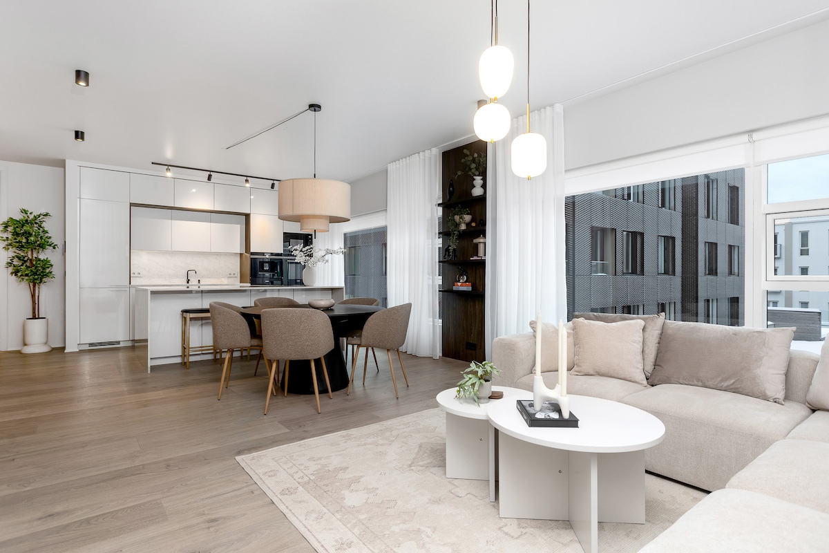 Stay in a brand-new luxury apartment in Reykjavík’s most exclusive neighbourhood, just steps from the harbour, top restaurants and cafés. This modern space features a bright living room, a fully equipped kitchen, and a spacious bedroom with a king-size bed — everything you need to feel at home in the heart of the city. Whether you’re visiting for a city break, business or relaxation, this apartment offers comfort, style and an unbeatable location.