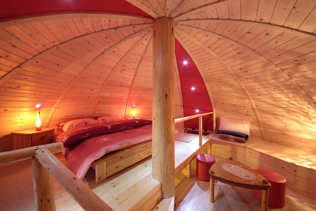 This wood cabin is standing on the top of our property. From this place you have the best view. At every side of the house you can see the mountains on there best. When you look at the pictures you can see that the two-personsbed is only available with a little stairs or you can sleep on the sofa bed downstairs. There is a place where you can make fire and make dinner on a bbq. at the terras we will serve breakfast every day from 1 mei till 1 oktober