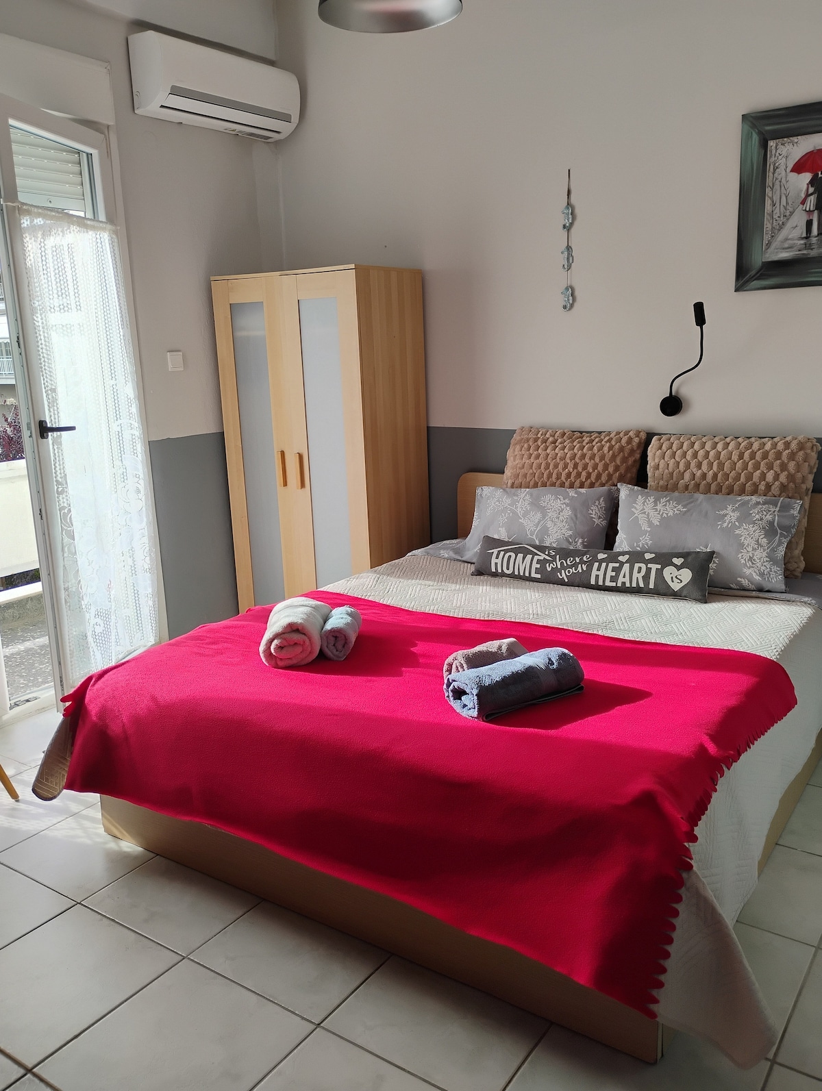 -Located at the very center of Thessaloniki,at Mitropoleos Street,where everything you need is 2 minutes away by foot. -Easy access to all major means of transportation (taxi, bus) -Inverter A/C unit for heat/cold -Hotel style bathroom -High quality mattress,pillows and sheets -Iron/ironing board -Room darkening curtains and blinds -Even though it is located in the heart of the city,the place is adequately soundproofed from external noises -Perfect for couples,lone travelers,friends and families