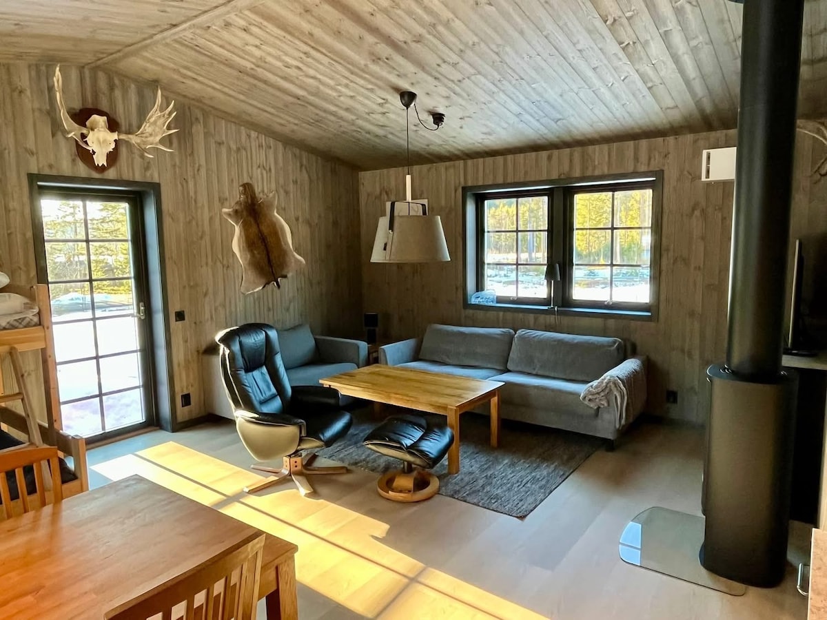 Experience the perfect blend of modern comfort and wild beauty at our secluded cabin tucked 10 km deep into the forest. Surrounded by dense woodland, this off-grid retreat offers a peaceful escape for those looking to disconnect and recharge. Relax on the spacious deck, soak in the hot tub while taking in panoramic views of nature or unwind in the sauna. Explore nearby hiking trails, and if you're lucky, you might spot moose, lynx, bears, or a variety of smaller forest animals and birds.