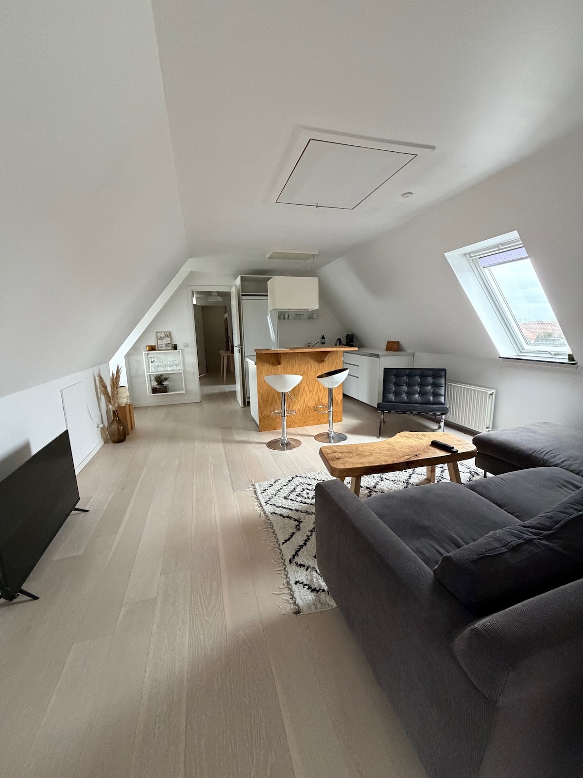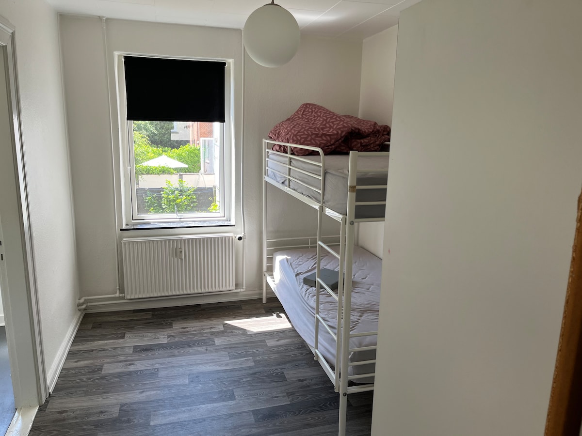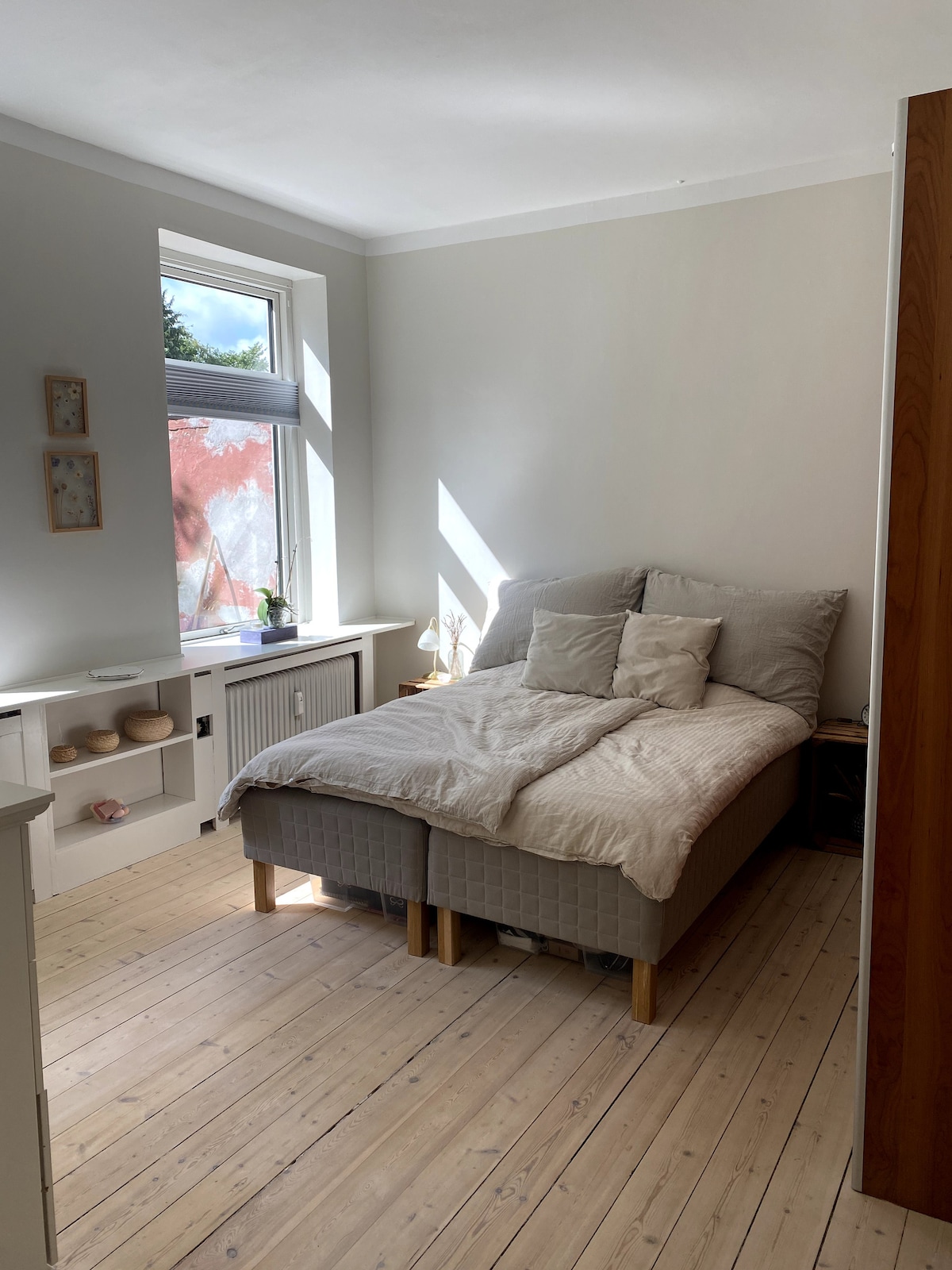 Newly renovated and charming 3-room apartment (60 sqm) in Kolding's Latin Quarter, a few minutes' walk from shopping, cafes, Koldinghus and Slotssøen. Two separate bedrooms with room for three people in total. The apartment is on the 2nd floor with a view of Koldinghus and the neighborhood's houses and yards. Access to the courtyard, where you can enjoy a cup of coffee and pick fresh vegetables in the greenhouse in the summer. The apartment has its own entrance via the house's shared staircase.
