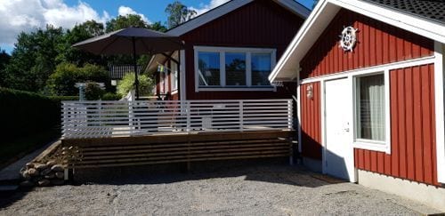 A cottage with a view over the sea, about 200m from the beach. 50 min by car from Gothenburg and 7 min. from Ljungskile. Sheets and towels (if you do not bring you own) 100kr/person. Cleaning (if you do not want to do it by yourself 300kr (pay me cash or ”swisha”.)