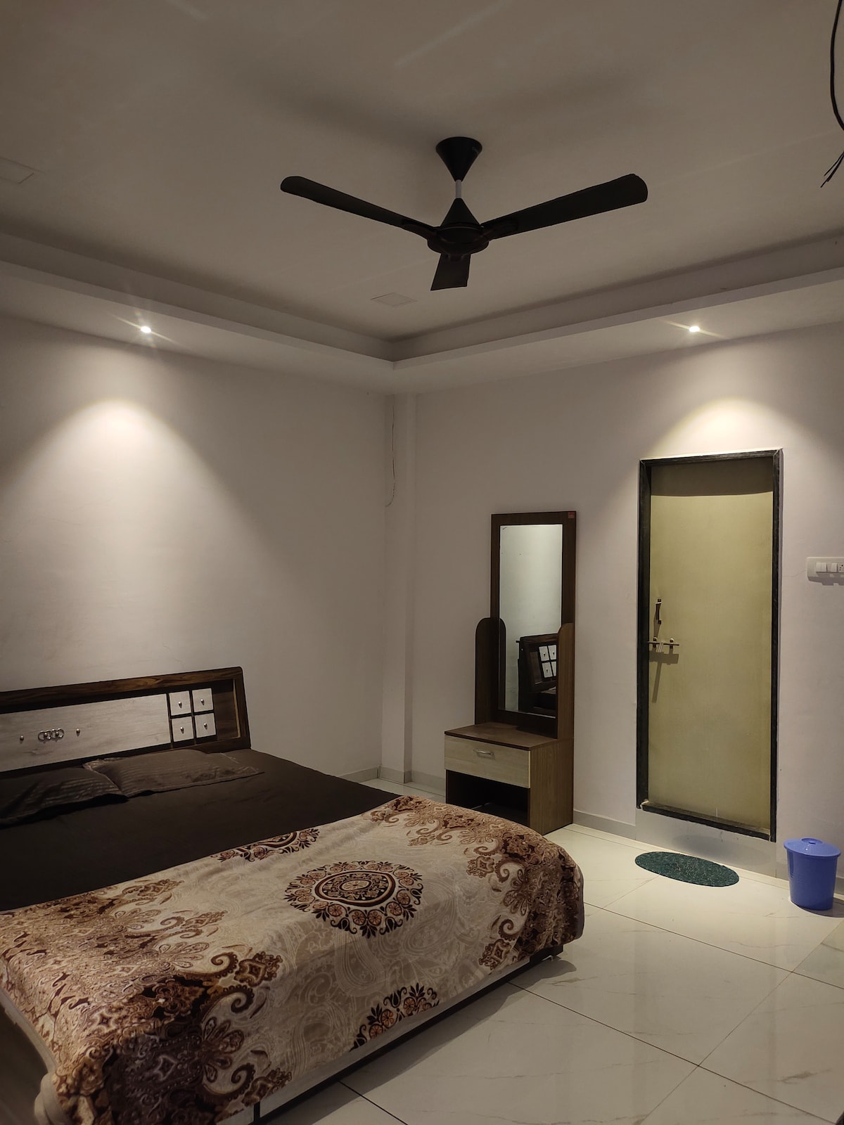 Space is found on the lower level. I have everything I need in my fully equipped kitchenette, so it's perfect for extended stays as well. There is air conditioning in the bedroom. There is a parking spot available. Our space can accommodate up to 5 individuals, and it's close to ZP Kolhapur and the collector's office.