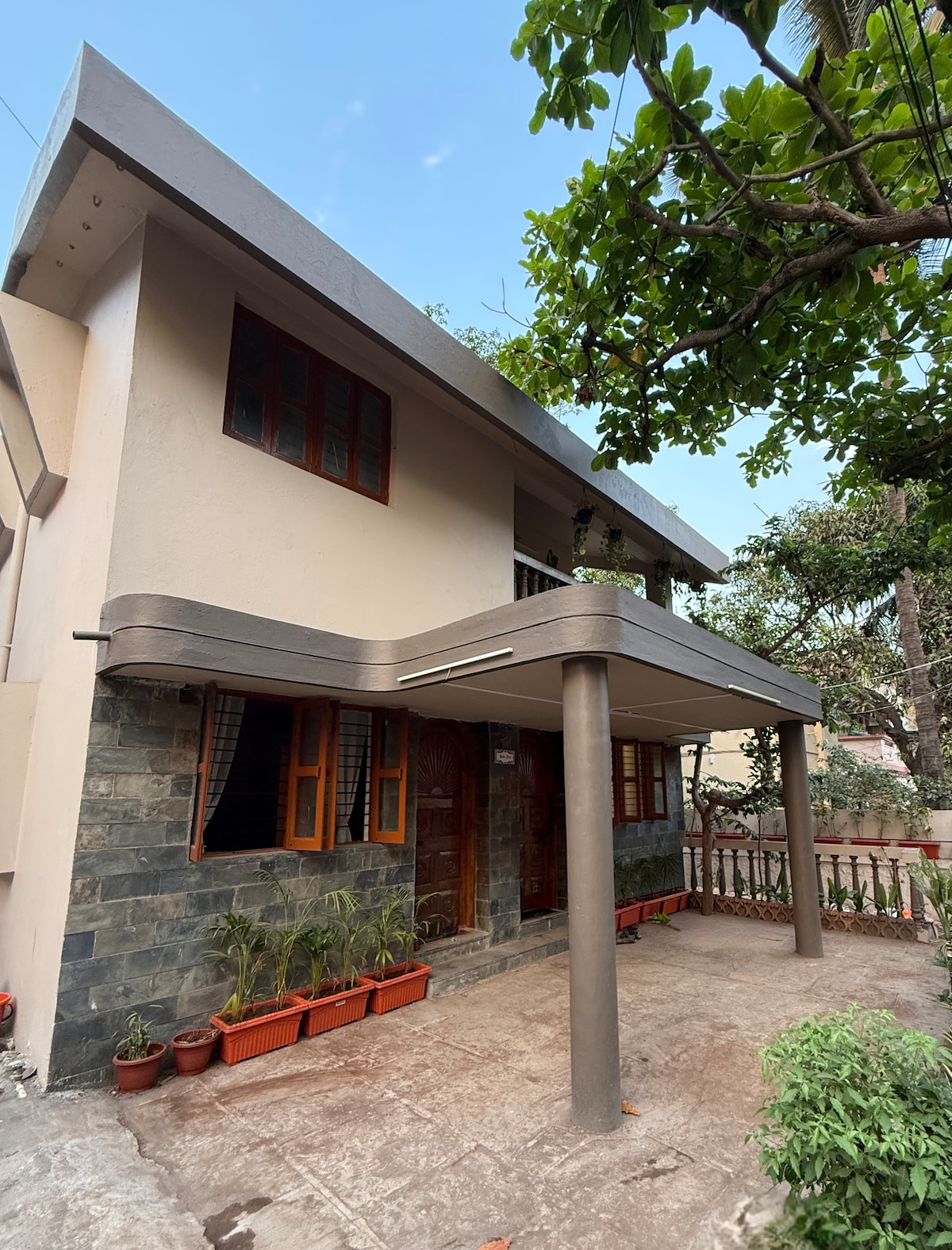 अतिथि देवो भव is at the heart of everything we do Nestled in a quiet lane and surrounded by greenery, this home offers a peaceful retreat with a blend of comfort and tranquility, where your mornings begin with the gentle chirping of birds and a freshly served breakfast, which is included in your stay. Daily housekeeping and dishwashing are handled by us, including multi-day stays, ensuring a comfortable and hassle-free experience. Home-style Kolhapuri meals are available at an additional cost.