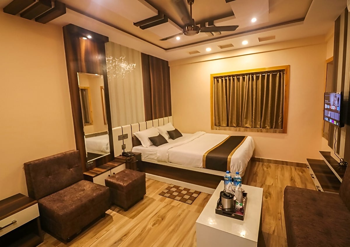 Welcome to your modern premium stay – a spacious, well-furnished deluxe room designed for both couples and families looking for comfort, class, and convenience. Enjoy a large premium bed with cozy mattress & fresh linens, paired with a plush sofa for ultimate relaxation. Stylish interiors with a spacious, hygienic, and clean environment Private attached bathroom with modern fittings Bright and airy room, perfect for a relaxing stay Daily housekeeping and excellent room service (our USP!)
