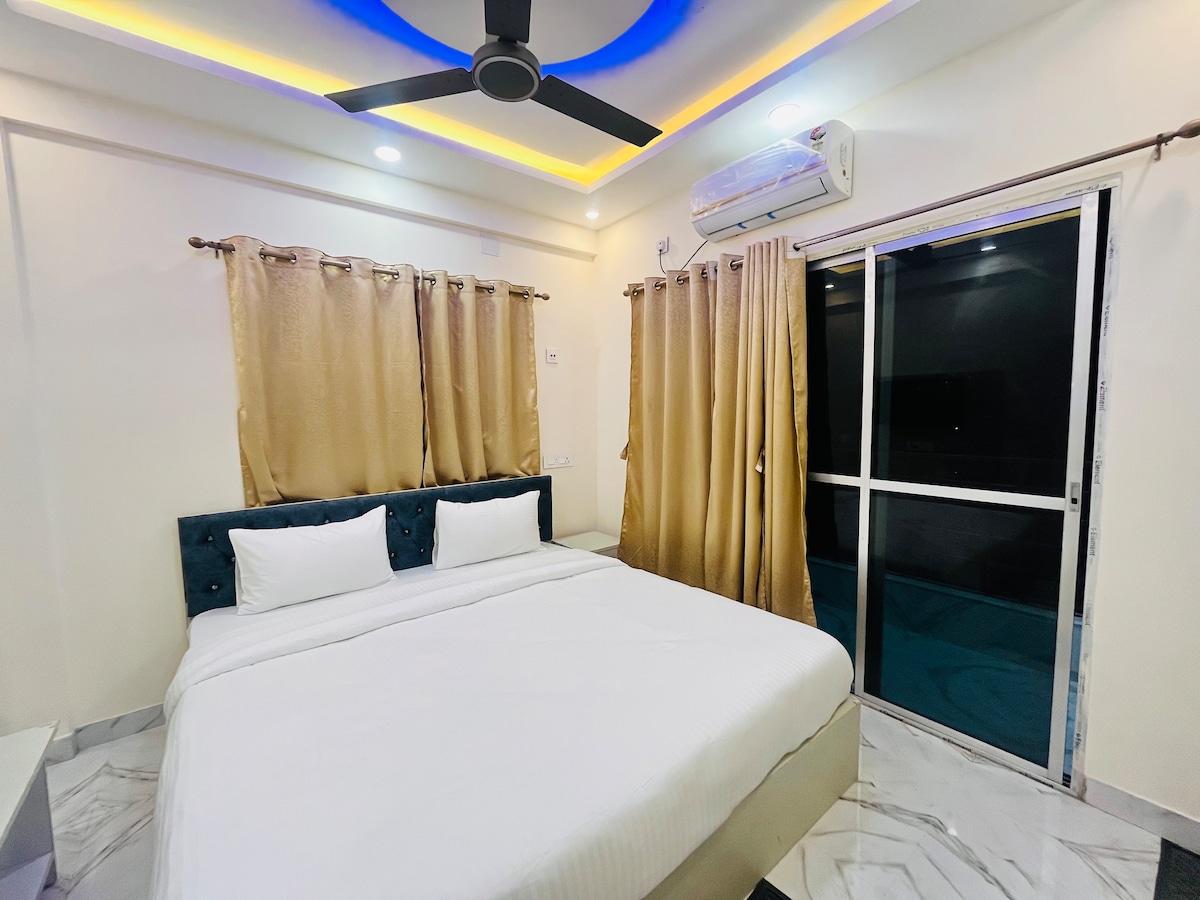 Comfortable 3-Bedroom Guest House Near Kolkata Airport Welcome to a peaceful and well-designed guest house located near Netaji Subhas Chandra Bose International Airport in Kolkata. This property offers three private bedrooms, each thoughtfully furnished with a comfortable bed, attached bathroom, and hot water, ensuring a relaxed and calm stay. The entire floor is dedicated to guests, making it ideal for families, small groups, or business travelers, comfortably accommodating up to 6 guests.