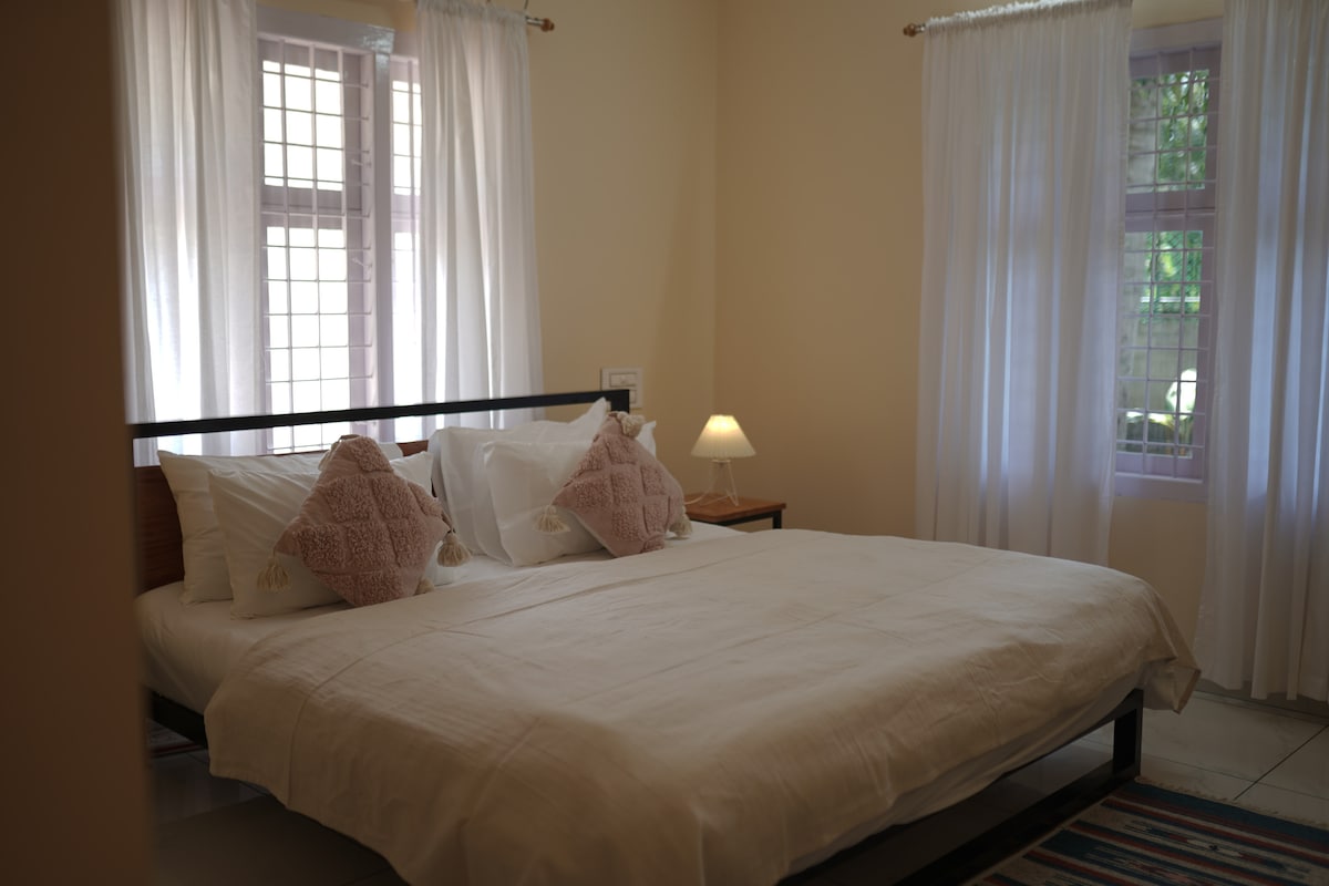 Our ancestorial home, tastefully modernised and redecorated throughout. Kuzhivila House located in a peaceful and serene setting surrounded by nature making it an ideal choice for a tranquil getaway in Varkala. In the heart of Varkala, away from the noise and bustle of the famous stunning cliff top so you get the best of both worlds and can enjoy the tranquillity and scenic surroundings, yet 10 minutes drive from the Arabian Sea at Varkala Beach.