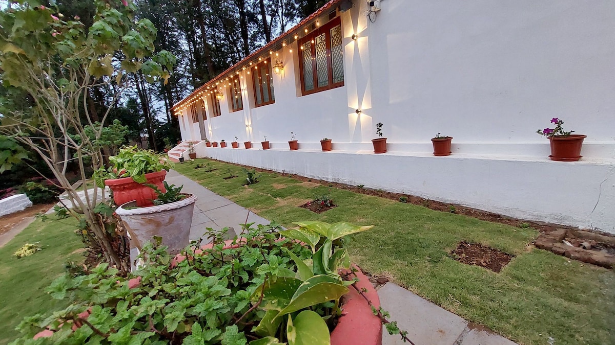 Escape to our serene retreat featuring 5 tastefully designed rooms, each with its own private sit-out. Gather with family & friends in our cozy lounge, perfect for conversations, games, or simply unwinding. Near major sights, yet quietly nestled in nature for a relaxing, stress-free stay. Enjoy seamless WiFi & 24/7 power backup. Entire property is given to one group at a time; rooms provided based on 2 guests per room. Make your evenings special with BBQ and bonfire experiences (extra charge).