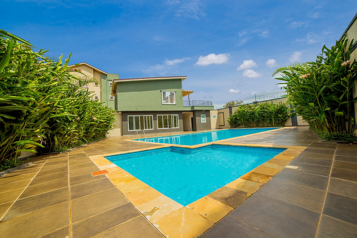 Located in the heart of Kampala city, only a 6 minutes walk from the central business district, this spacious suite is bigger than most apartments in the city centre. The A/C suite features a bedroom with an en-suite toilet, an extended living room, a family toilet and a balcony overlooking Kampala city. Most Kampala attractions, popular bars, companies are very accessible from here. FAST WiFi, a pool, restaurant, bar, daily cleaning service, 24/7 hot water are available.