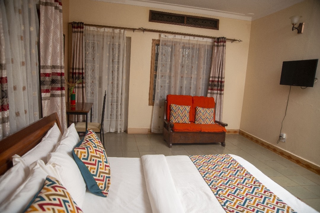 You’ll love the stylish decor of this charming place to stay, located right on Muyenga, Kampala. These Executive Rooms have all the amenities required by luxury seeking tourist or business traveler. They include a private bathroom, premium bedding, balcony, flat TV screen, AC, Bed and Breakfast, free Wi-Fi, 24hr room service and space of 17x12.5 fts