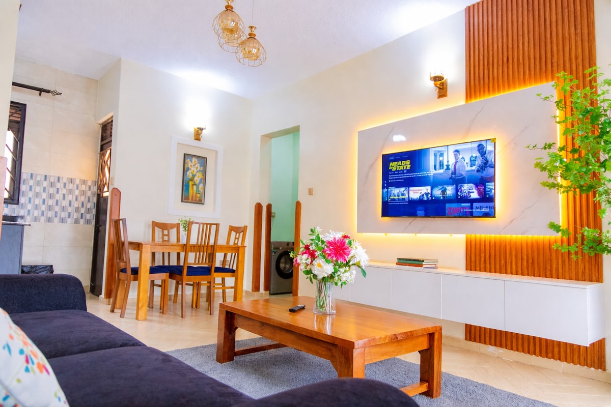 Nice, spacious, fully furnished 2-Bedroom apartment in Kisasi Bahai road, Kampala all to yourself!Cleanliness is top priority, all beddings and towels are white and the apartment is cleaned 6 days a week at no extra cost!Located Just steps from the Bahai Temple, and 5KM drive from Acacia Mall. 3 balconies to enjoy the views. Kitchen fully fitted with mordern appliances. Smart 55 inch TV! Lush green gardens outside and a pergola perfect for making memories. The flowers were chosen with love!