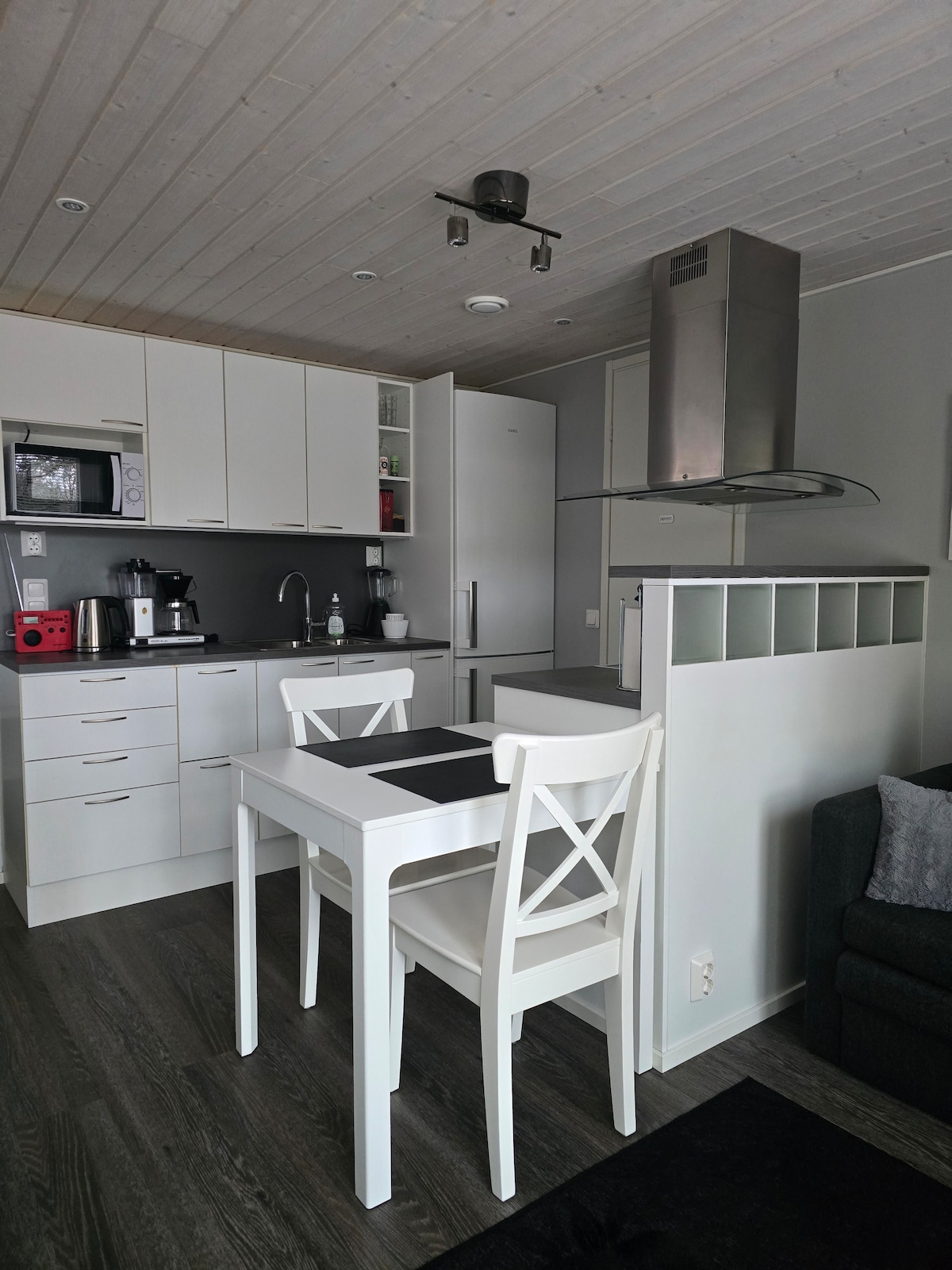 This wonderful lakeside log cabin is located 25 km north from Mikkeli. The cabin, finished in 2014, invites you to relax and enjoy the tranquility and beauty of Finnish nature. It's cosy and decorated with high-class natural materials and comfortable furnishings and is fully equipped with a modern, compact open plan kitchen, two bedrooms, each with 160 cm x 200 cm beds, loft room with a king size bed, an inviting living room and dining area, bathroom, sauna, separate toilet and a terrace.
