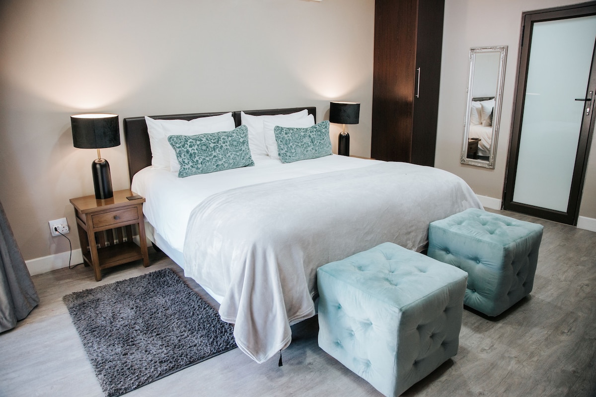 All rooms are furnished with a double bed and has an en-suite bathroom with a shower, basin, and toilet. The room is equipped with a kettle, cutlery, and crockery, mini-bar fridge, toaster, microwave, coffee and tea, working desk, TV, DStv and Wi-Fi.