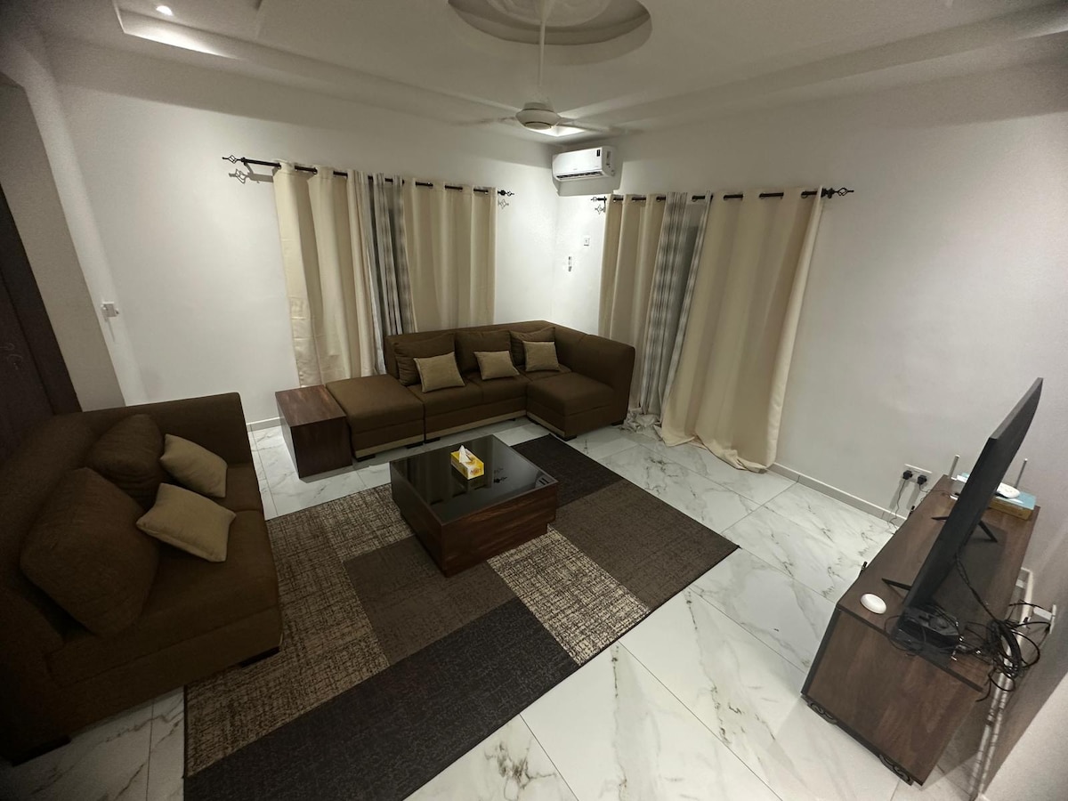 Beautiful apartment in private compound. -Brand new construction -Foreigner-friendly space -Super cold A/C, Fast Wi-Fi -European shower with hot water -Smart + YouTube TV. Use your Netflix! -New bed + bedding -Small kitchen with single gas round, fridge+freezer, kettle, dishes + utensils -Families welcome -Gated comunity. Privacy guaranteed! No guards or dogs to bother with! -Very safe location on second floor with modern locks Specials Available: -Airport pickup: 3000 dalasi -Meal: 500 dalasi