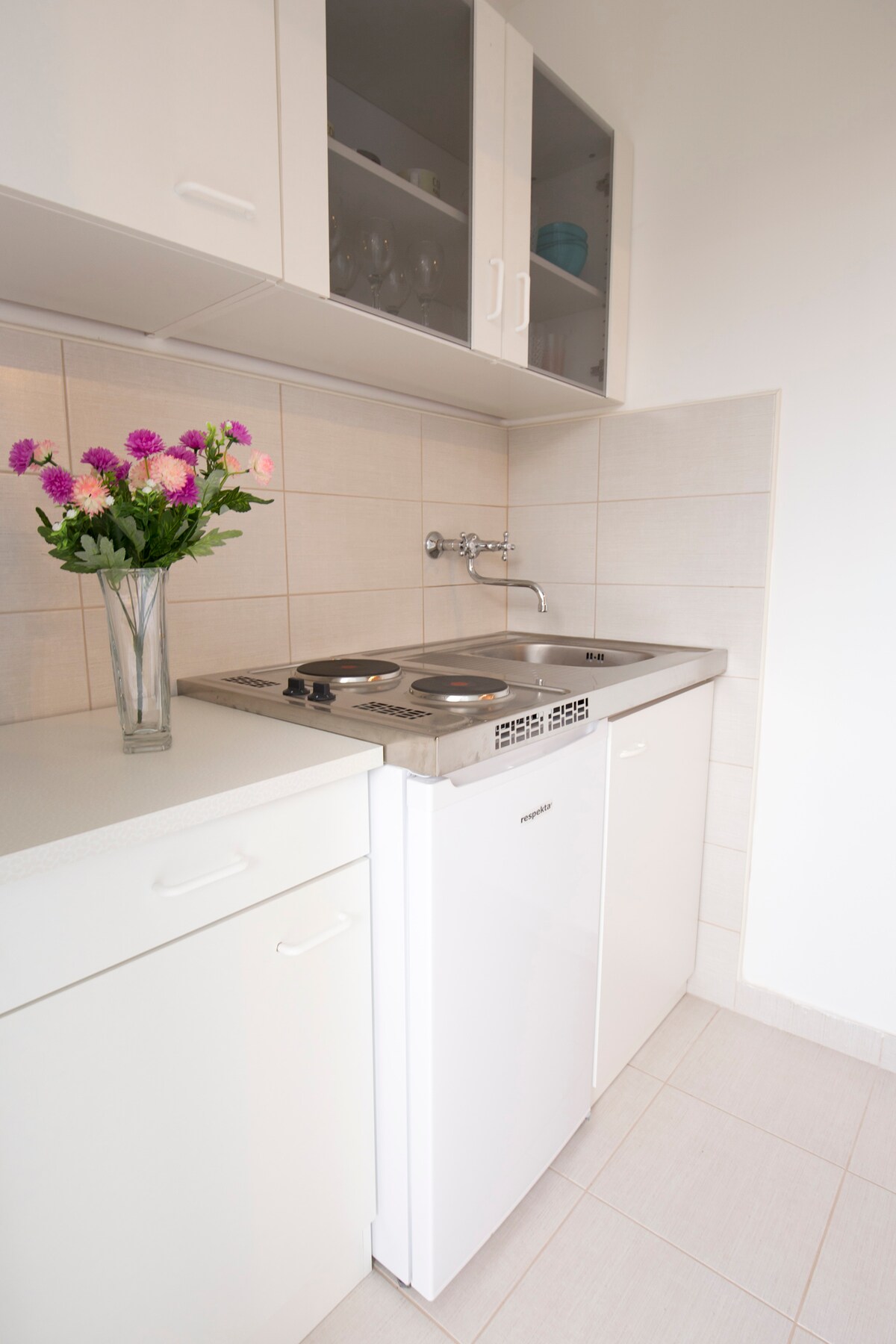 The gorgeous renovated apartment for two is located in the quiet heights of the harbor area. A few steps up from the ferry jetty you will have your own oasis overlooking the bay and the islands. Beaches, restaurants and lively cafe terraces are only a few minutes walk away. Air-conditioning and free WiFi.