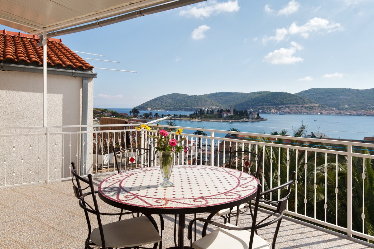 Apartment for 4 people located in the center of the town Vis. The apartment has a huge terrace with a BEST sea view of the bay of Vis. The apartment is large, spacious and comfortable. We also help our guests organise Blue cave tour and bike rentals.