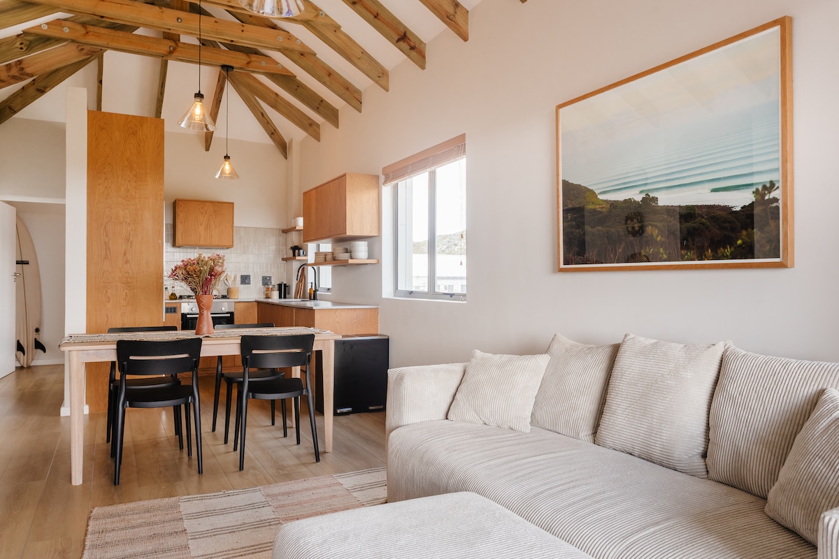 This charming flatlet is around the corner from the beach, just 60m away . Picture falling asleep to the sound of waves, walking round the corner for a surf and walking to one of the local restaurants for a great meal … Expect a relaxed rustic beach feel, with bamboo floors and ceiling, clean crisp linen and towels. This is a place to unwind and with being so close to the beach, restaurants and shops no car is needed....
