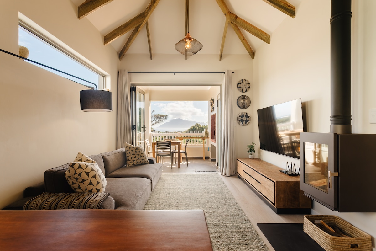 Sunset Apartment is a stunning beach retreat in Kommetjie, nestled in a serene cul-de-sac. This beautifully furnished getaway offers everything you could desire—air-conditioning, a covered deck, and breathtaking ocean and mountain views. Just steps away from the beach, the soothing sound of crashing waves can be enjoyed from the balcony and bedrooms. It’s the perfect escape for couples seeking a romantic getaway, with a seamless power backup system ensuring comfort even during load shedding.