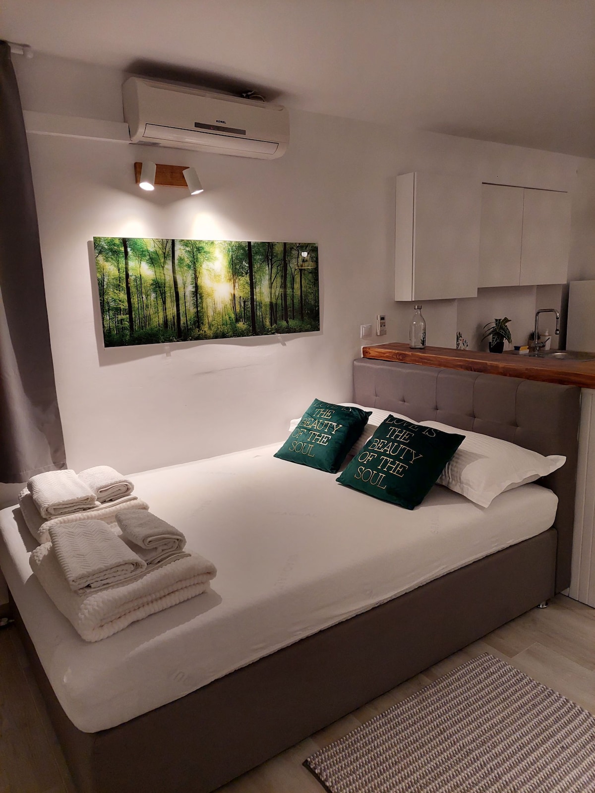 Brand new one bedroom apartment in downtown Dubrovnik with a private terrace. Supermarkets, malls, restaurants, bars and bus stop few minutes away by foot. 20 mins by foot to get to the Old Town Dubrovnik or minute away with a bus. The apartment has an elevator, so there are no stairs to reach it. The closest beach is 10 minutes away by foot. The apartment has a private parking space in the garage