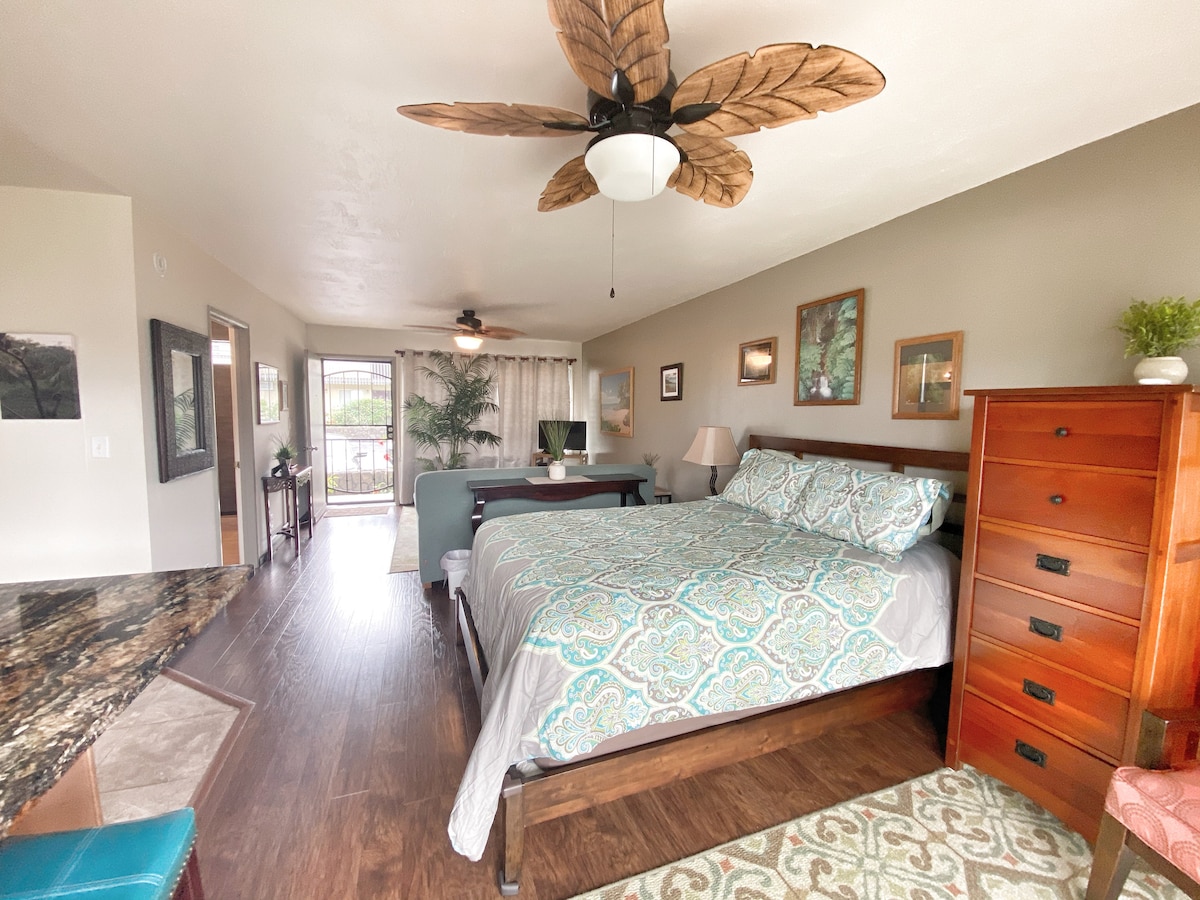 Tropical vegetation surrounds this unique freshly updated stand alone two unit bungalow creating a cool retreat from the hot Hawaiian sun. It is located in the Kona Shores condo complex. This is a great location on Ali’i Dr, close to restaraunt’s and shopping as well as some beaches. Convenient dedicated parking spot nearby makes access to the condo very easy.