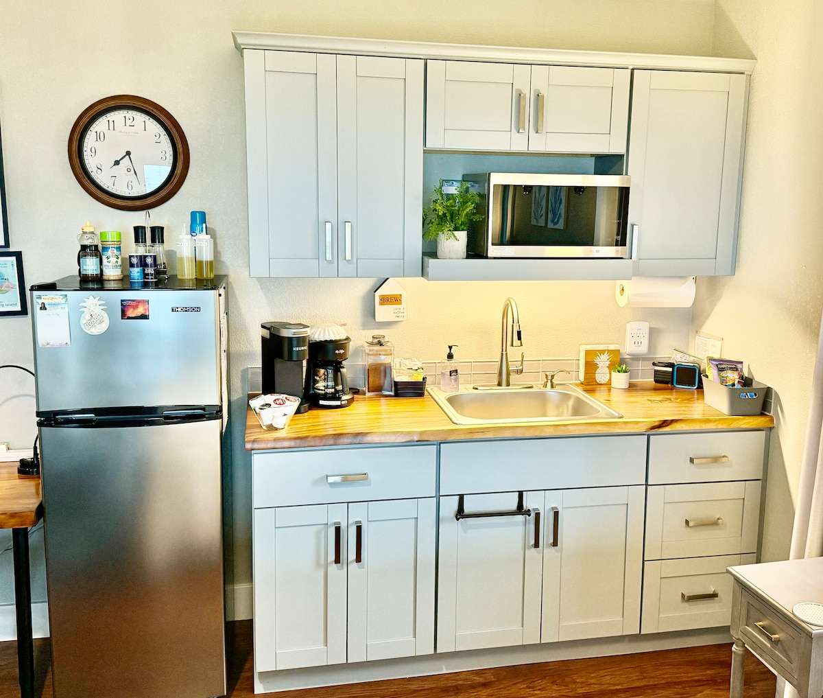 Wake up to some of the best ocean views in the area from this peaceful, modern studio. Guests often say that one night is just not enough to truly enjoy this special oasis. Ideal for those seeking serenity away from the crowds, the space offers a KING SIZE bed, AIR CONDITIONING, convertible sofa for extra guest & private washer/dryer. A well-equipped indoor/outdoor kitchenette. Enjoy a covered lanai, gas fire pit, gas grill, fast Wi-Fi, smart TV, beach gear, essentials for a relaxed stay.