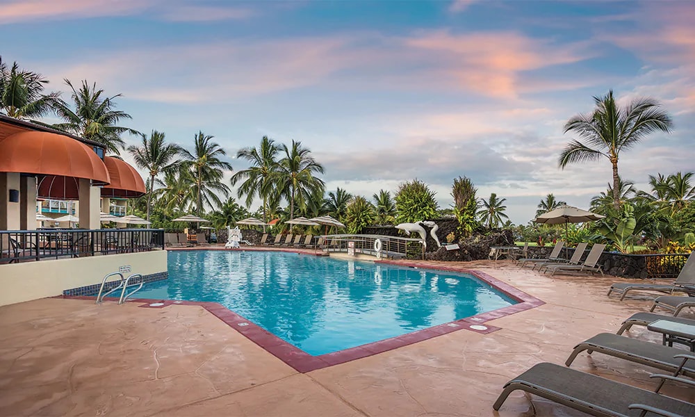 Discover tropical serenity at our lush Club Wyndham Mauna Loa Village resort. Our peaceful sanctuary is next door to the Kona Country Club and within two blocks of the shopping, restaurants, and movie theaters in Kailua-Kona. Enjoy our 6 outdoor pools, 6 outdoor hot tubs, and 11 tennis courts available for a small fee. We also offer laundry facilities, children’s activities, barbecue grills, and a friendly concierge who’s happy to assist you with every need