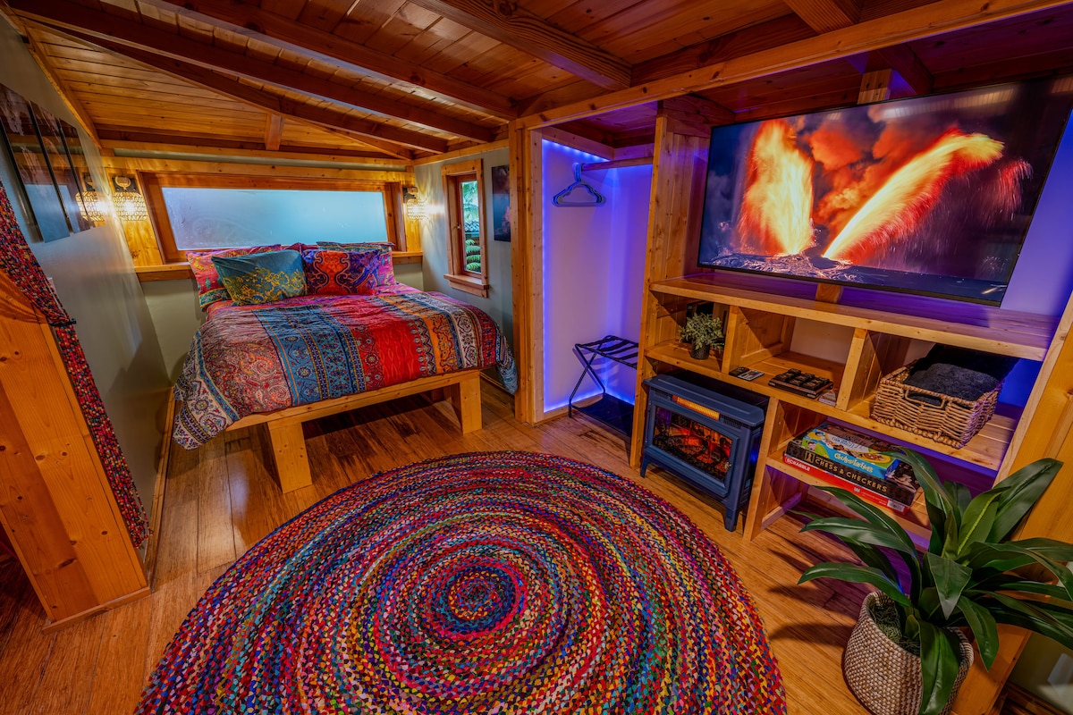 If you like nature and animals, come and enjoy our hobby farm! It's glamping in a tiny house with the incredible view. (It is a farm, not a hotel) The loft bed with ladder as picture shown. Screened/no windows so you can enjoy breeze and view. Cute living room and big shower/restroom down stairs. Patio with outdoor grill and sink. Beautiful sunset and infinity sea/sky line from the bedroom. Galaxy and shooting stars at the night. About 20mins from many beaches, and downtown.