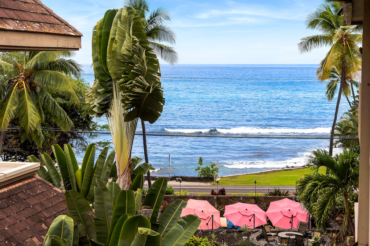 Your home away from home after exploring the island’s many beaches, coffee farms, snorkeling/diving spots, & downtown Kailua-Kona! Sun-kissed ocean & pool views await you in this cozy, stylish space. A perfect budget-friendly, clean, cool place to rest between your island adventures! Located near downtown Kailua-Kona and 500 ft above sea level, this property offers cooler temperatures and breezes that delight guests. This suite best fits solo travelers or couples who like to be cozy!