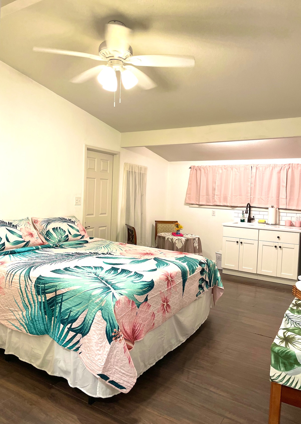 Stay at the southernmost point in the USA, where raw nature meets island charm. Our cozy motel room is just minutes from the famous black sand beach and a short drive to Hawaiʻi Volcanoes National Park, home to the actively erupting Kīlauea volcano. Fall asleep to the sounds of the tropics and wake up ready to explore one of the most powerful landscapes on Earth. This ‘Maui’ inspired room includes a Kitchenette.