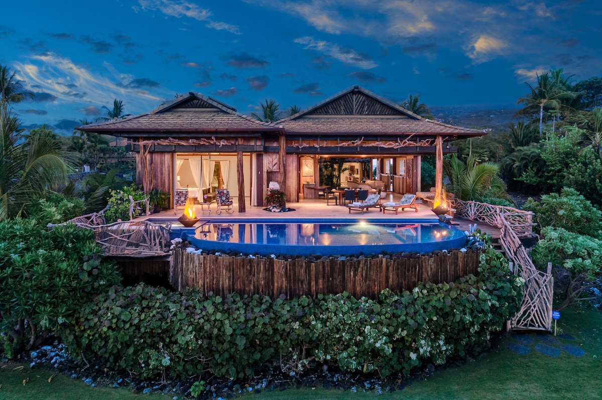 Escape to Hale Mele, a 4,000 sq/ft Polynesian-style luxury retreat on Kohala’s sunny Gold Coast. This single-story home offers 4 bedrooms, 5 baths, 2 half baths, and 2 outdoor showers. Lounge in your private heated saltwater pool and spa, relax in the tropical gazebo, savor Mauna Kea views, or explore the resort with a 6-passenger golf cart and e-bikes. Nestled in the gated Champion Ridge resort, Hale Mele combines Hawaiian luxury, elegance, and exclusivity for an unforgettable island oasis.