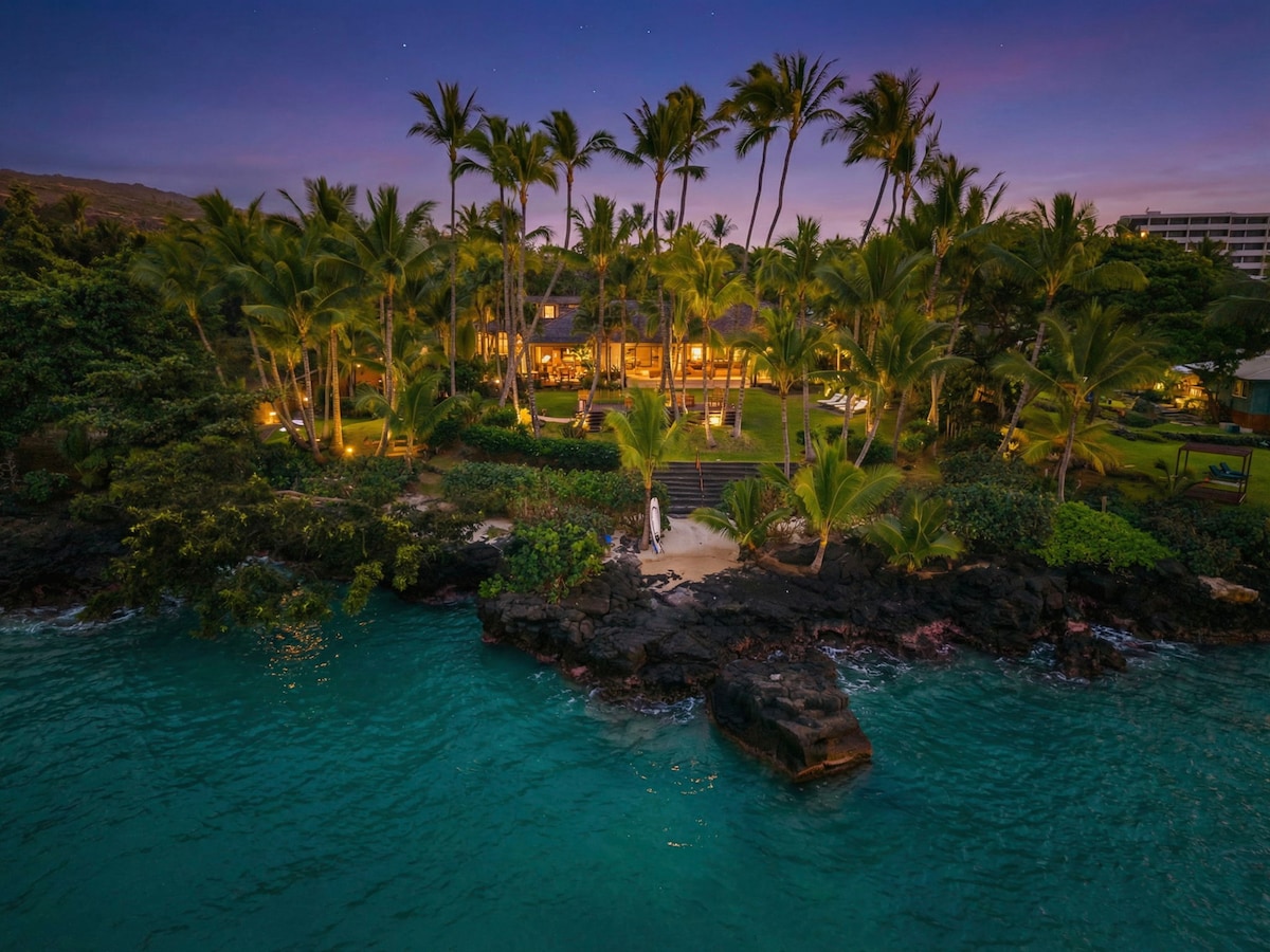 Hahalua Bay Villa, also known as Manta Ray Bay Villa, is an iconic oceanfront estate set directly on the shoreline of Keauhou Bay in Kailua-Kona. Framed by lava rock, tropical gardens, and the ever-changing blues of the Pacific, this private retreat offers a rare combination of scale, craftsmanship, and connection to the rhythms of island life. From sunrise canoe launches in the harbor to golden sunsets over the water, every day here unfolds at nature’s pace.