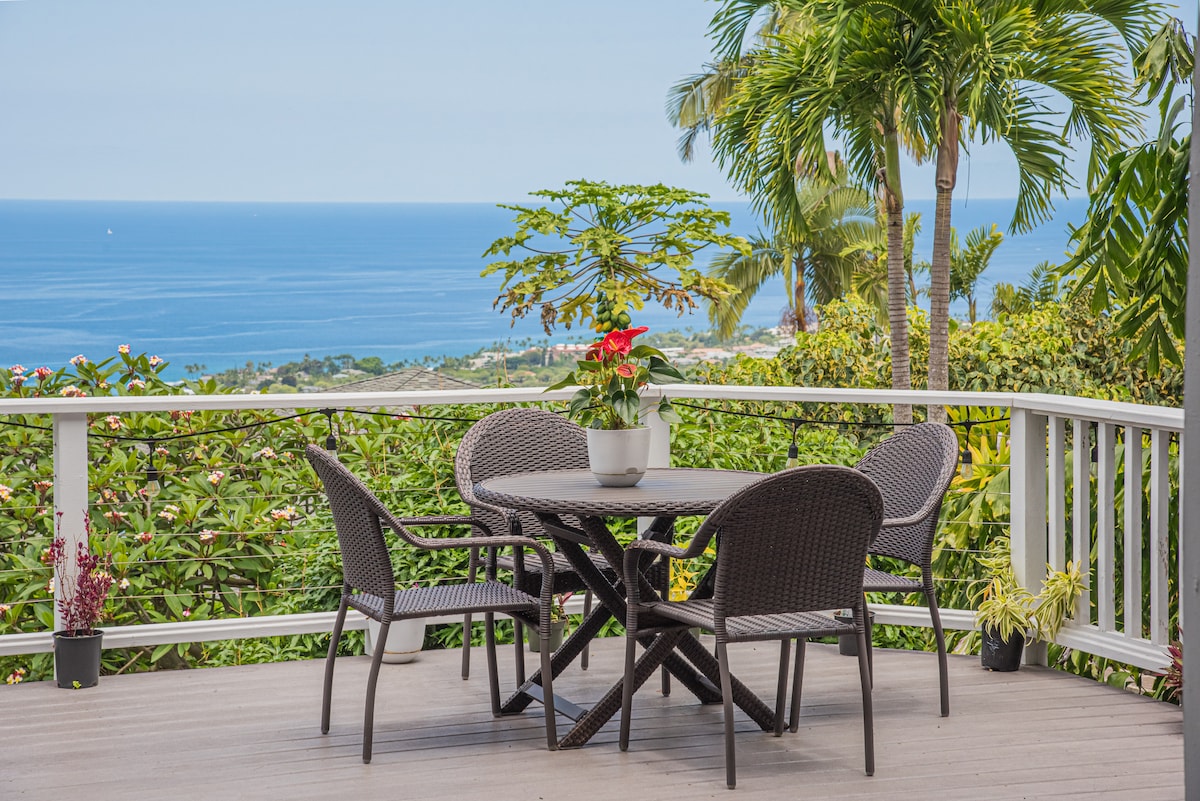 Kona sweet spot with private lanai, amazing ocean view, ideal temperatures & personal parking spot. Devoted Super-hosts on-site to maximize your accommodations & experience. Very safe neighborhood. Lots of amenities / beach gear. Only 6 minutes to beaches & great snorkeling, 10 minutes to downtown for diverse food options, shopping & historic sites. Exquisite Kohala beaches 30 minutes north. Popular Walua Trail just 2 blocks away to stroll or jog. * Please no 3rd party bookings. Mahalo.