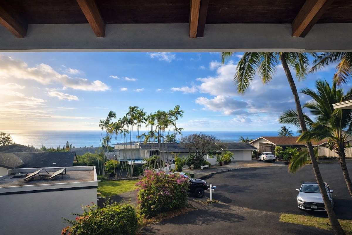 Experience the day coming alive over Mauna Kea while enjoying a cup of Kona coffee; evening refreshments admiring lush vegetation and tropical birds all from our nicely appointed lanai. Being offset from activities on Alii Dr and away from other buildings, we have a peekaboo ocean view with quiet and privacy. Magic Sands Beach (surf and boogie boards) is a walk down the driveway while snorkeling at Kahaluu Beach is a short walk along Alii Dr. Centrally located for food, fuel, fun and excursions