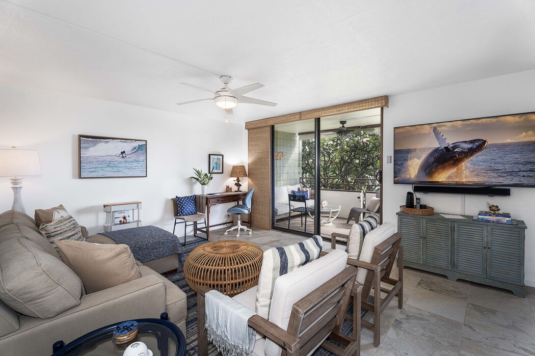 Step into your Hawaiian escape at Kona Reef, where the Pacific's beauty is just steps from your sliding glass door. Located on the ground floor, this unit offers easy access (with just five steps down from the parking lot) and stunning proximity to the ocean. From your private lanai, enjoy amazing sunsets as the sky becomes a canvas of maroons, oranges, yellows, and reds—a perfect end to the day. Whether you’re savoring morning coffee or a tropical sunset drink, this spot is a dream come true.