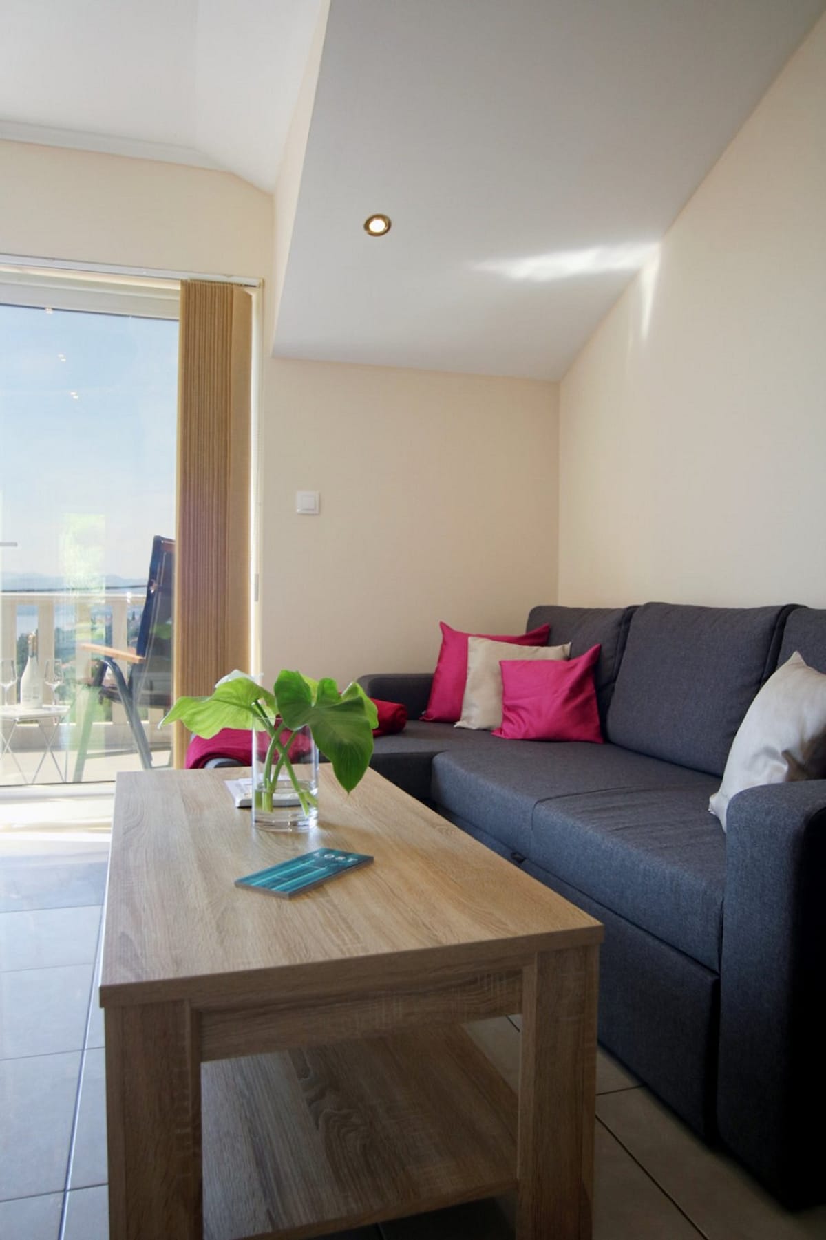 90 m² apartment with sea view & free EV charging, located on the second floor, ideal for up to 6 guests. Offers a living room with sofa bed, fully equipped kitchen, two double bedrooms, and two bathrooms. Enjoy two terraces, including a 12 m² terrace overlooking Cavtat Old Town, the sea, islands, and Dubrovnik. Air conditioning, Wi-Fi, satellite TV, and central heating included. 🚗 Two private parking spaces & 🔌 free EV charging (please inform us in advance).