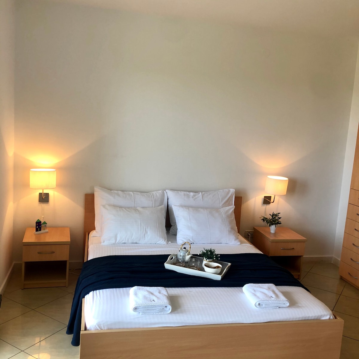 Forget your worries in this spacious and serene space. This apartment features a separate bedroom, a living room area with kitchen and dining space and a private bathroom. Apartment can accommodate up to 3 persons (2 in bedroom and third sleeps on the sofa bed in the living room). In front of the apartment, enjoy your own private terrace with table and chairs. All guests have access to our main shared terrace where you can enjoy sunbeds, sun-umbrellas, jacuzzi and an outdoor shower.