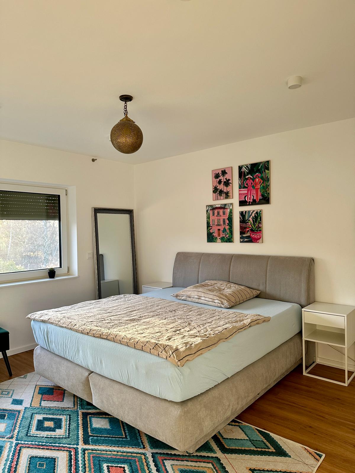 Unser kleines Apartment liegt in unserem neu gebautem Haus in traumhafter Lage in Bonn Oberkassel - direkt am Wald und ca. 10 Laufminuten zum Rhein. Alles bei uns ist neu und modern aber mit einem hohen Grad an Gemütlichkeit. Das Zimmer verfügt über alle Dinge, die man als Reisender braucht. Unsere kleine Küche ist ausgelegt für eine schnelle Mahlzeit am Abend ohne Herd.Wir bieten euch einen täglichen Spülservice an. Die Lounge vor eurem Eingang macht Euren Aufenthalt perfekt.