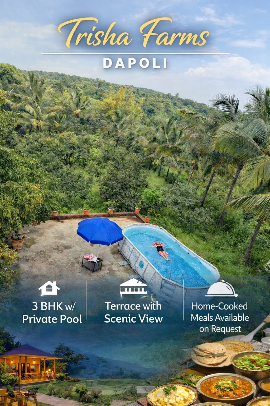Trisha Farm Dapoli 3卧室带泳池的平房