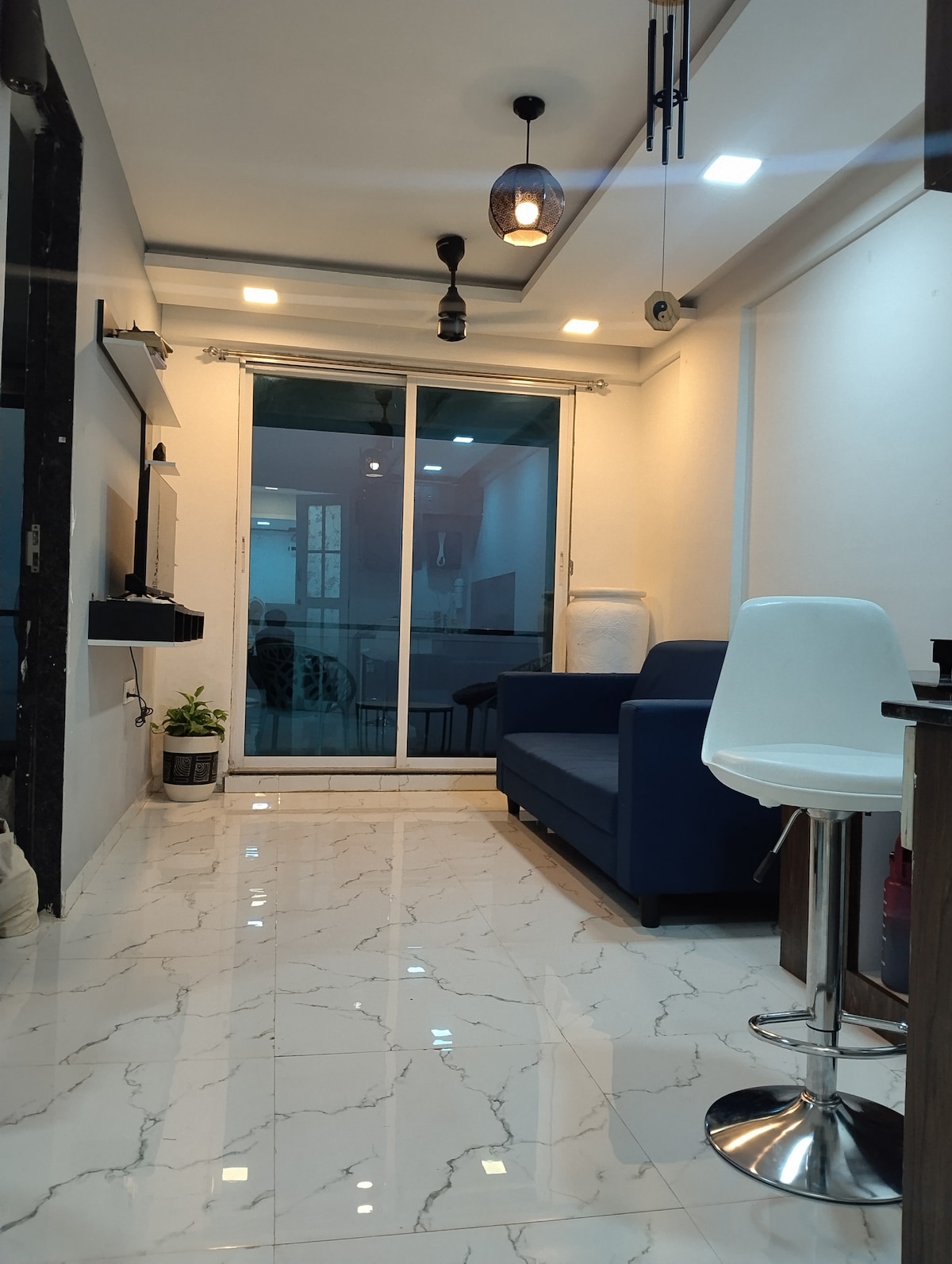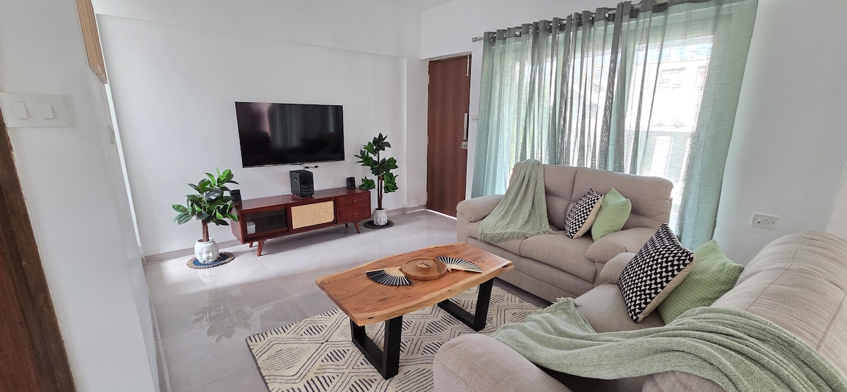 Relax and enjoy the best views of the Arabian Sea. * The View: Head to the balcony or master bedroom to watch the view of sea coast and Suvarnadurg fort * Fun: Use the Smart TV with free OTT apps and high-speed Wi-Fi. * Easy Stay: We have power backup for your comfort. * Eat: The kitchen bar is ready for snacks. Fresh fish is available nearby at the port! Relax, unwind, and enjoy the waves. We are here if you need anything! Polygon Stays By COTFLEX