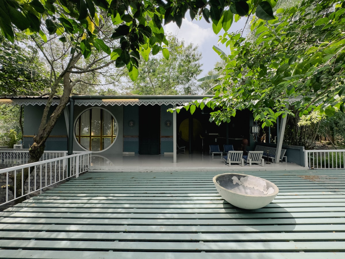Tucked away in the peaceful surroundings of Khadakwasla’s backwaters, the property is where nature, art, and heritage blend into one immersive experience. Crafted using ancient wood salvaged from a 200-year-old temple in a nearby tribal village, the home carries the warmth of history in its details — from the heavy wooden beds to the artful kitchen design. Thoughtfully integrated with modern architecture, it’s designed to evoke a sense of calm and connection to the land.