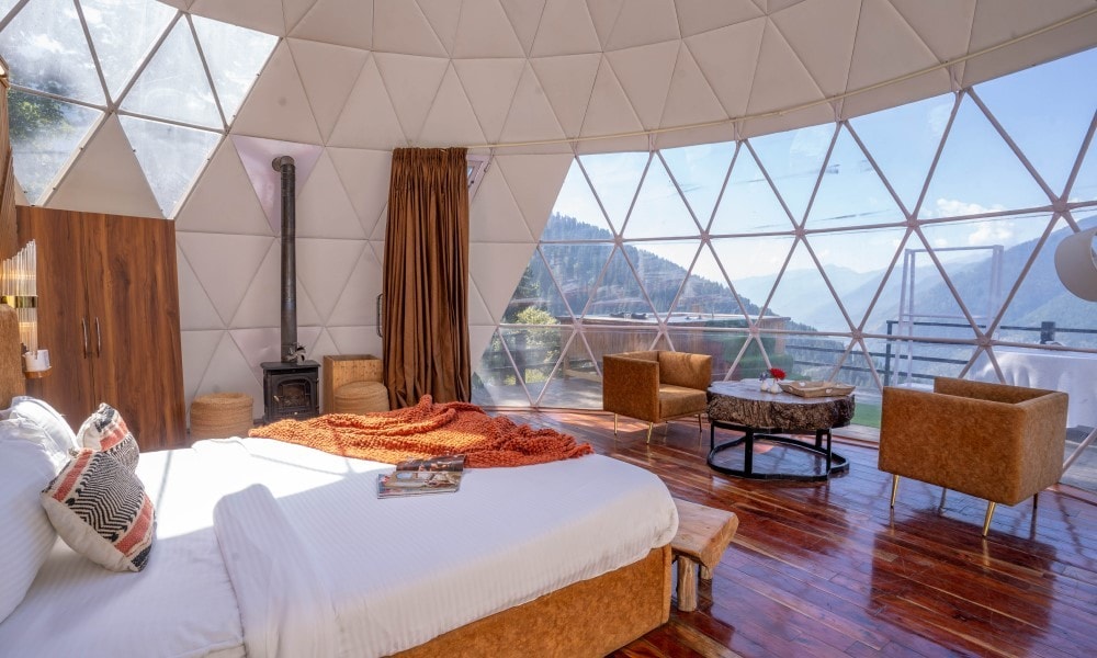 A glamping stay that transforms with your mood, go fully transparent at night to stargaze under the open sky, or close it up completely for privacy and comfort. Enjoy a game on the pickleball court or take a refreshing dip in the swimming pool, all set in the heart of nature..