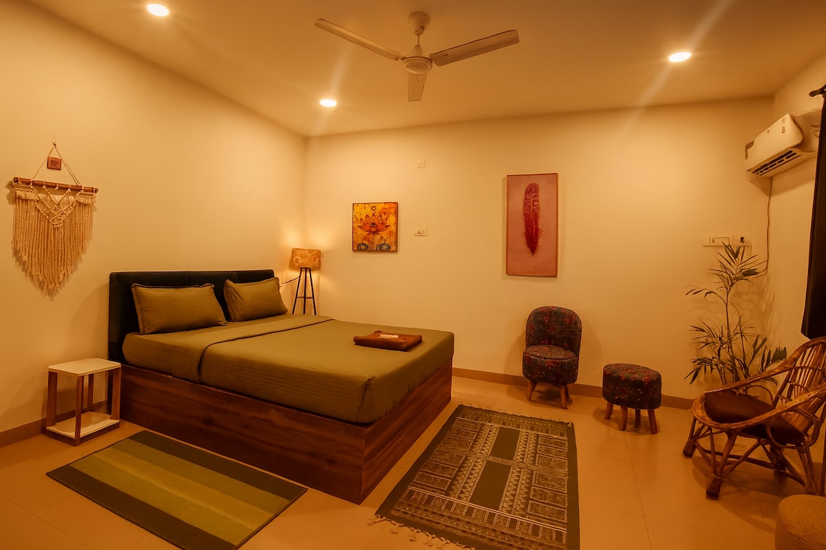 Flash Sale Alert! 🚨 Indulge in a getaway for less. For a limited time, enjoy exclusive rates on premium stays Located in the heart of Siolim, our Studios offer the perfect blend of comfort and convenience. Situated just minutes away from Goa’s top hotspots, including Thalassa, Kiki's. The stay is ideal for those looking to explore the vibrant nightlife and serene beaches of North Goa. 🍽️ Breakfast: Available at an additional cost of ₹500 per person (not included in the current pricing).