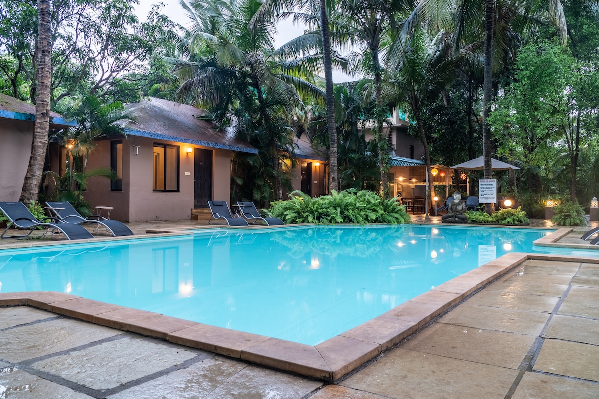 Pet friendly staycations, signature food experiences, and unparalled well-being awaits Kick back and relax in this calm, stylish space. Ensuite Cottage style large rooms in an established Coconut Plantation in Alibaug, which makes for an idyllic setting for a blissful holiday. This private property has EIGHT separate cottage style LARGE ROOMS with a poolside lounge & a separate living room space for dining. Each room is exclusive for guests, only the POOL & living room is shared.