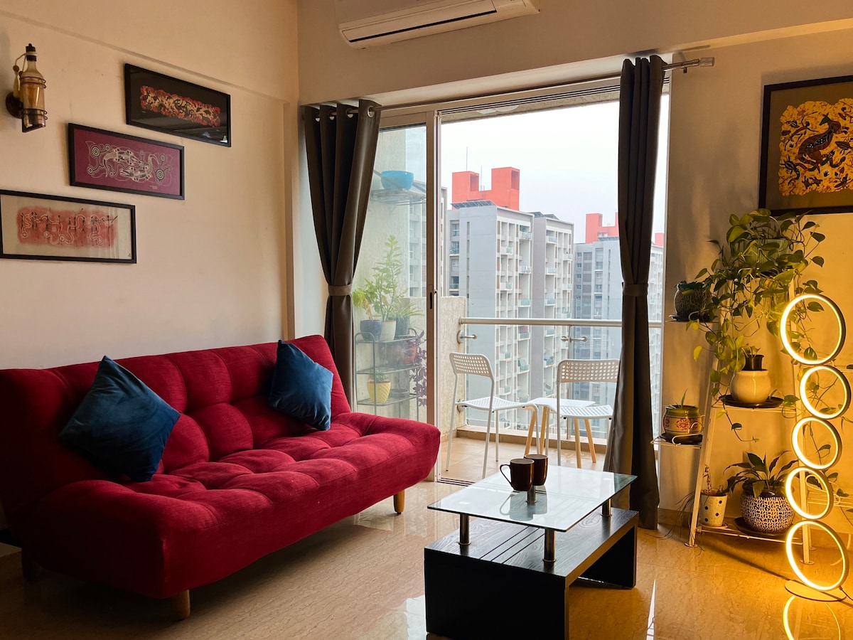 Welcome to SUKOON ➜ A home named after peace, tranquility, and serenity ➜ Perched on the 16th floor facing the Golf course, Sukoon opens its arms with an inviting warmth and a quiet luxury that instantly makes you feel you’ve arrived at your own private sanctuary. ➜ Every corner has been thoughtfully crafted to feel plush, homely, and effortlessly elegant. ➜ Perfect For: Staycations | Business Trips | Weekend Getaways | Spiritual Retreats | Couples & Families