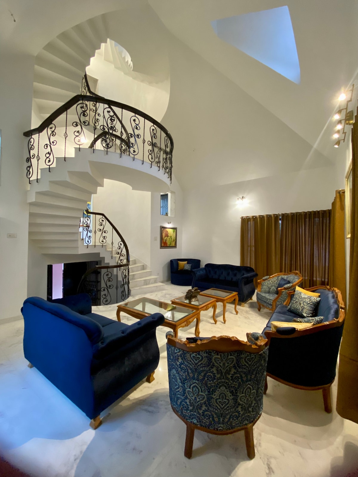Loaded with superior amenities Cozy Villa is a pet-friendly property that makes for an entire package of comfort, entertainment, nature and luxury. It has 4 bedrooms, 5 bathrooms, a fully furnished living area, a dining area, a kitchen, a terrace and an outdoor temperature-controlled pool. Every bedroom has an attached bathroom and a balcony. The terrace is well-lit with fairy lights and comfortable chairs that open up to the expansive view of the entire city.