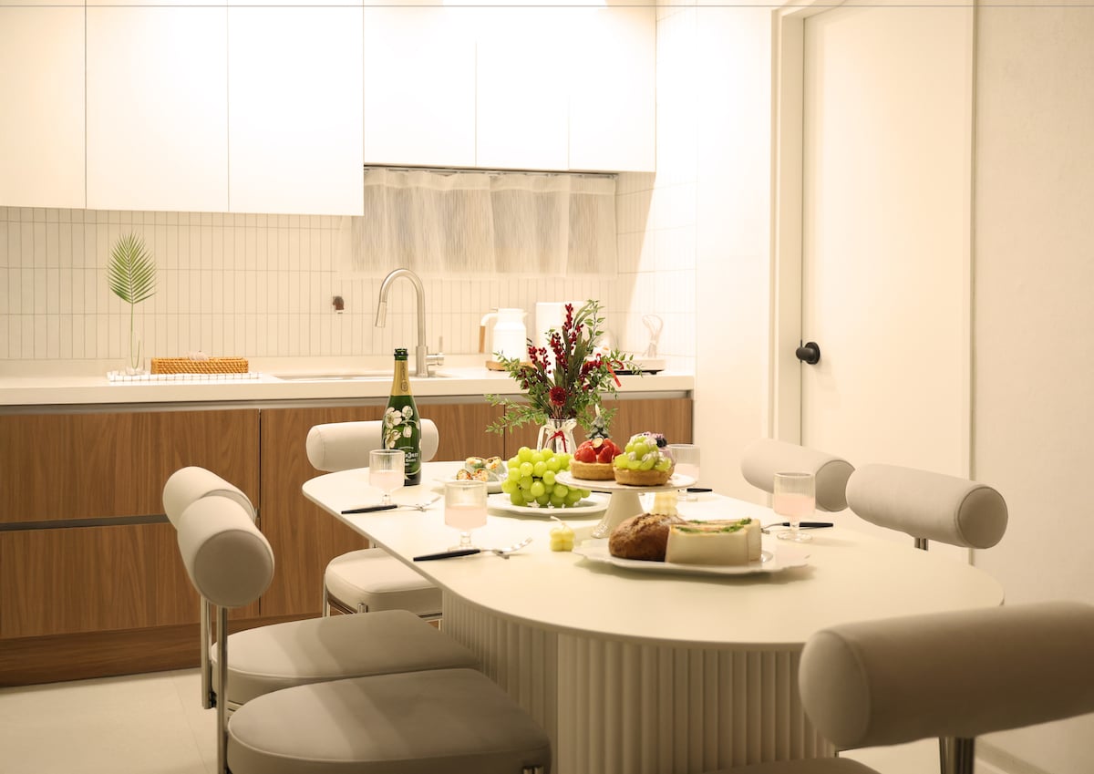 📍건대에서 드물게 30평의 넓고 쾌적한 공간으로 디자이너가 직접 제작한 다양한 감성 가구와 소품으로 이루어진 감각적이고 세련된 공간으로 각종 모임을 즐기기에 넓고 쾌적한 장소여서 재방문이 높은 공간입니다! - 인천공항 약 100분(6013번 버스-정류장에서 3분) - 성수역 3분 - 홍대입구 29분 - 명동(을지로입구역) 18분 - DDP역 13분 🏠브라이덜 샤워 등 다양한 모임이 가능한 감성 공간으로 조용한 환경이라 가족여행에도 좋습니다. 간단한 보드게임이 준비되어 있어요. 🍽️ 다이닝룸에는 대형 10인 테이블, 의자가 있는 주방이 있으며 실내 화장실, 소파 베드, 갖추고 있으며 빔 프로젝터 및 55인치 스마트TV설치가 되어있습니다. 21kg 대형세탁기, 건조기, 중형 냉장고가 있어서 출장이나 한달살기에도 적합한 장소입니다.
